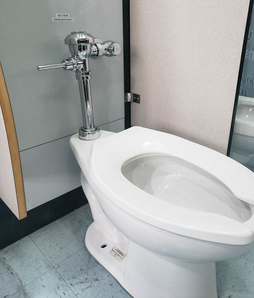 EcoVantage standard height elongated floor mounted toilet with vertical outlet