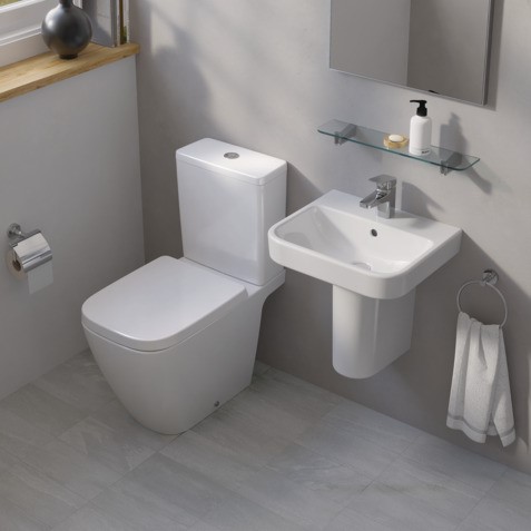 Ideal Standard i.life B Close Coupled WC Bowl with horizontal outlet and RimLS+ Flush Technology.