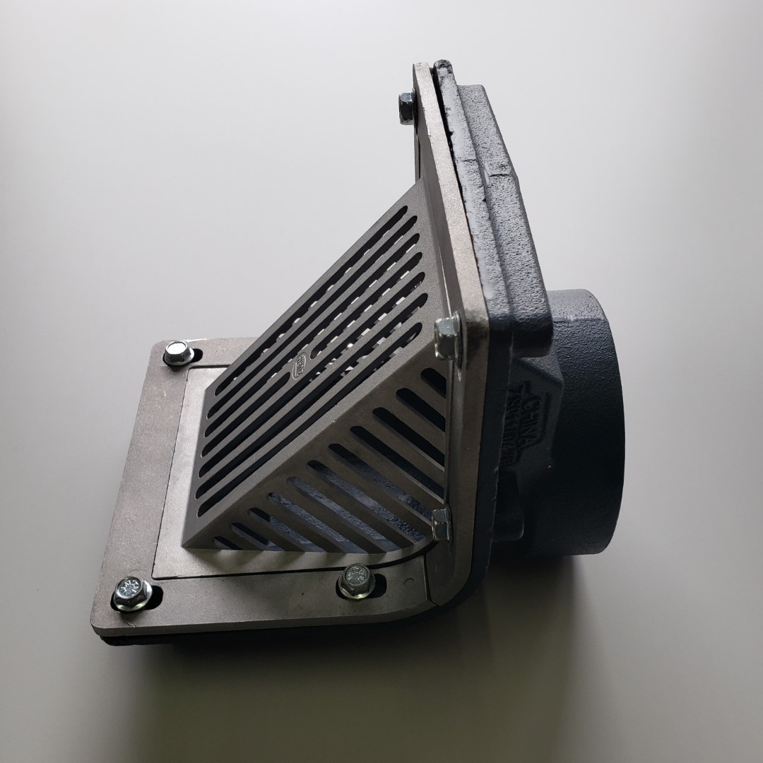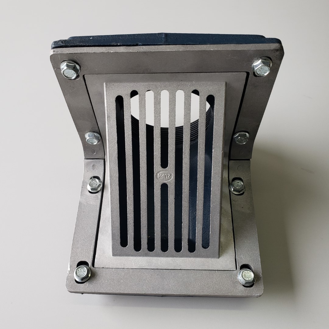The Oblique Scupper Roof Drain comes with a Dura-Coated cast iron body with reversible back or bottom outlet, oblique aluminum grate with 90° combination frame and membrane flashing clamp. Available for pipe diameters 2″ through to 8″.