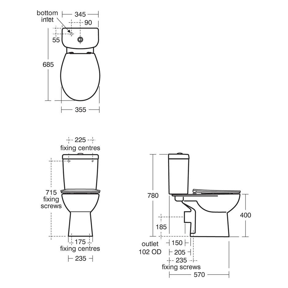 Sandringham Close Coupled Toilet Bowl – “P” Trap