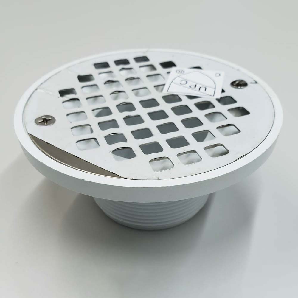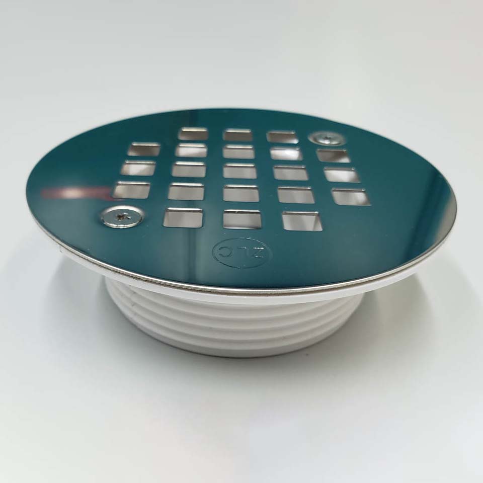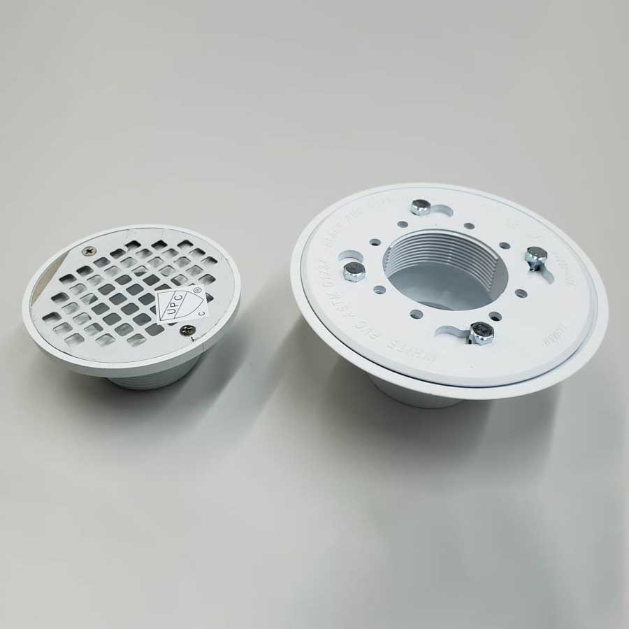 The Zurn FD2254 2″ x 3″ shower drain is recommended in showers where a membrane is generally used. The head is adjustable to meet finished floor elevations. The drain is furnished with a 6-1/2″ diameter PVC or ABS body, beveled clamp collar and head assembly. Complete with a brass threaded insert to accept square hole stainless steel, secured strainer. Fits over 2″ and inside 3″ schedule 40 DWV pipe.
